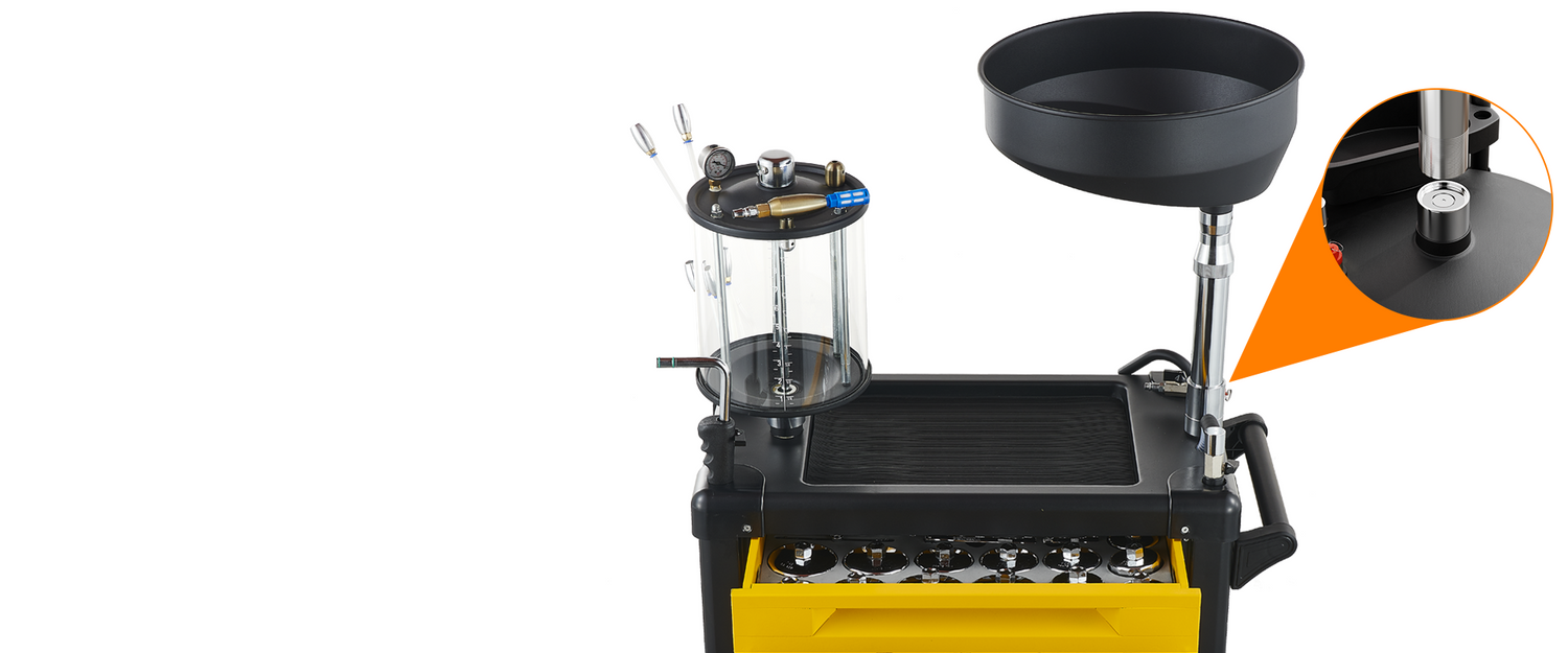 insert the oil suction rod into the engine compartment and open the handle valve