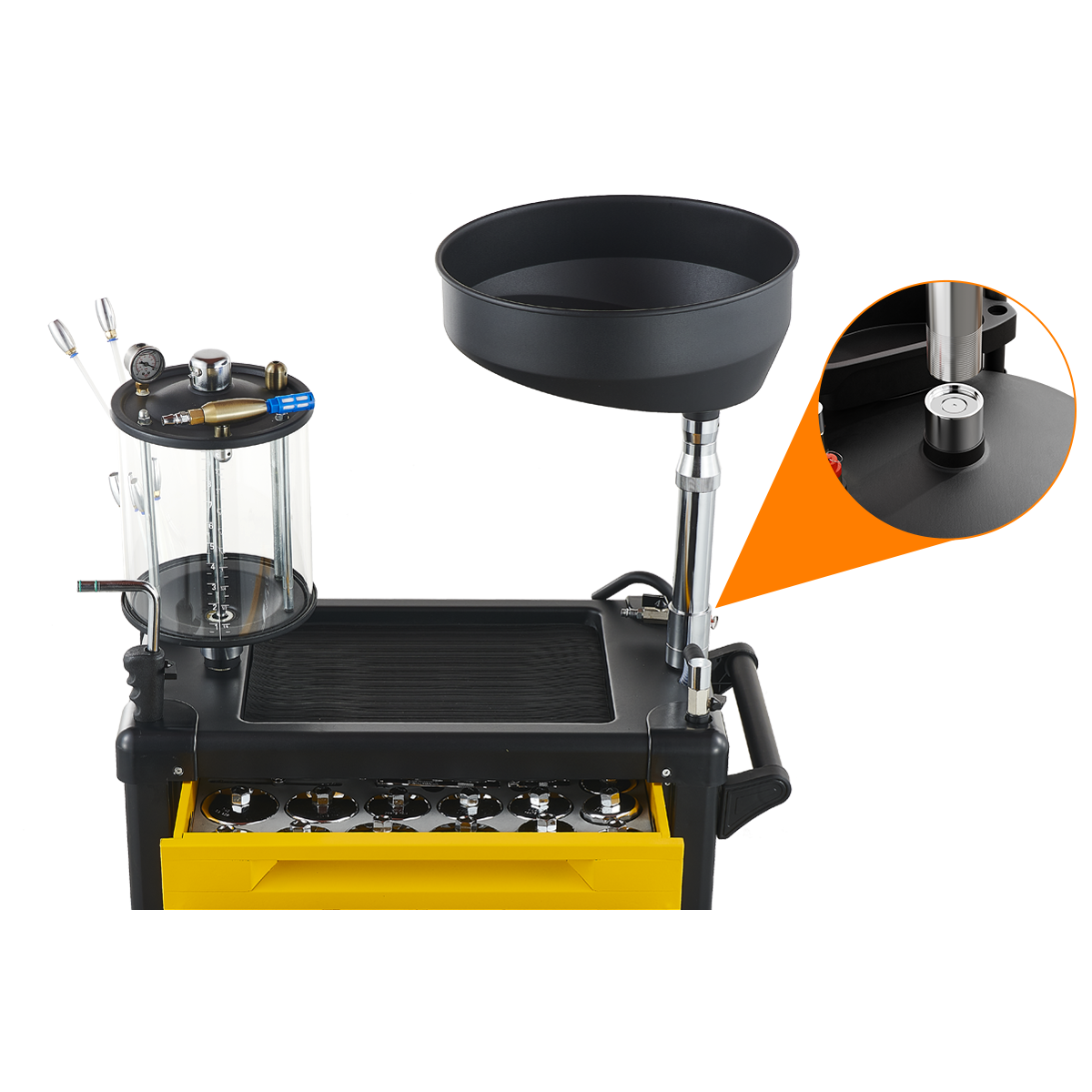 Oil drain: Press and rotate, the valve will open, and the oil will flow into the oil barrel.